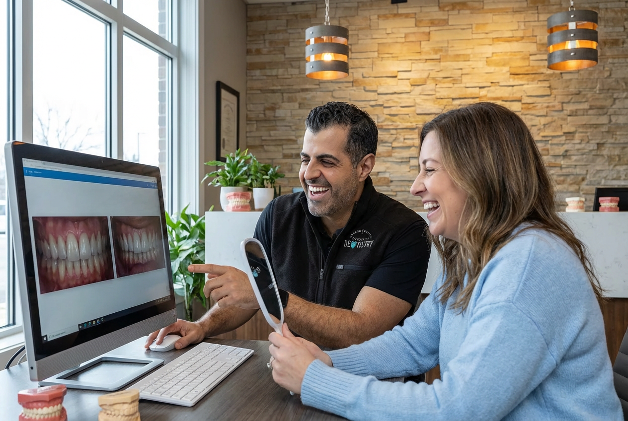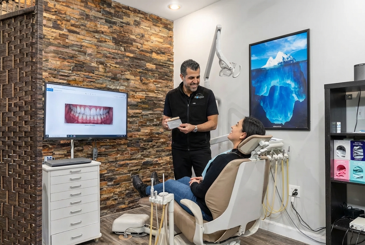 We start by evaluating your teeth and goals, then create a digital or physical mockup so you can preview your future smile before treatment begins.