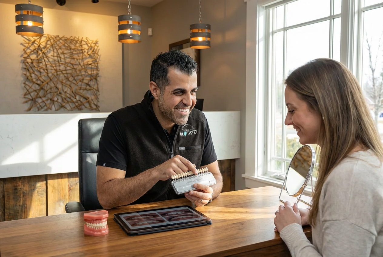 We begin by understanding your goals, evaluating your teeth and gums, and using digital tools to preview potential smile makeover outcomes.